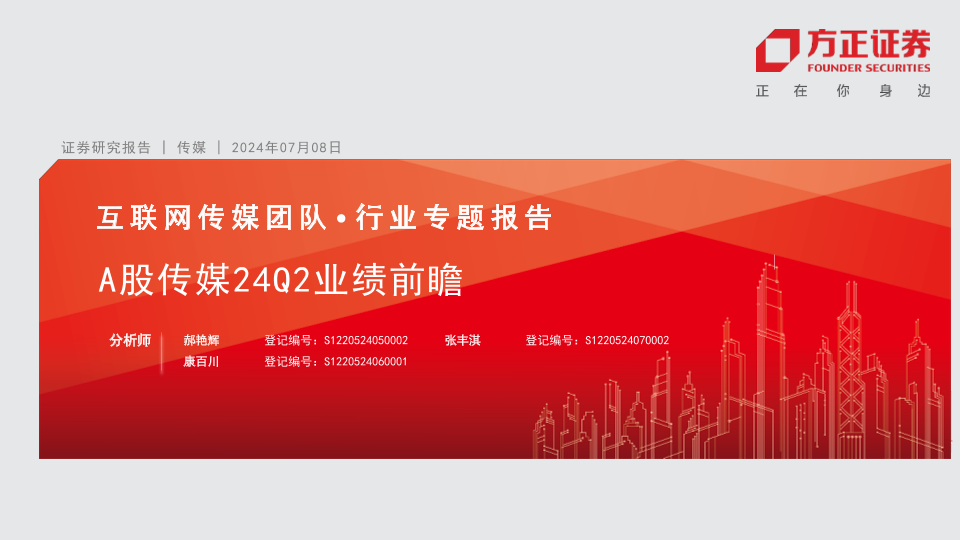 【方正证券】【20240708】互联网传媒行业专题报告:A股传媒24Q2业绩前瞻-25页