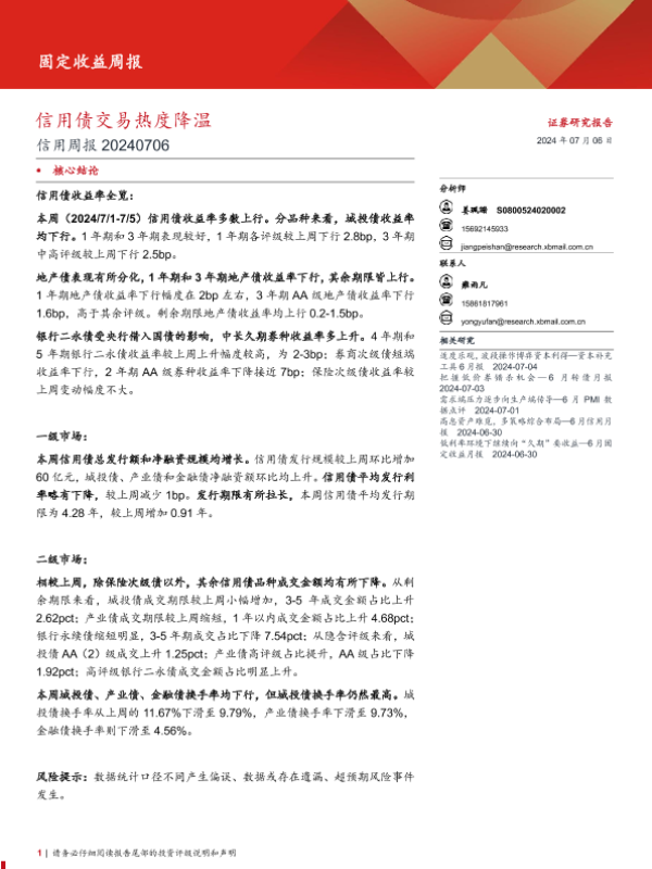 【西部证券】【20240706】信用:信用债交易热度降温-18页
