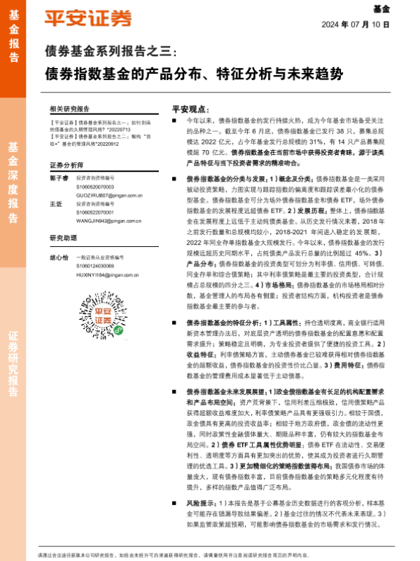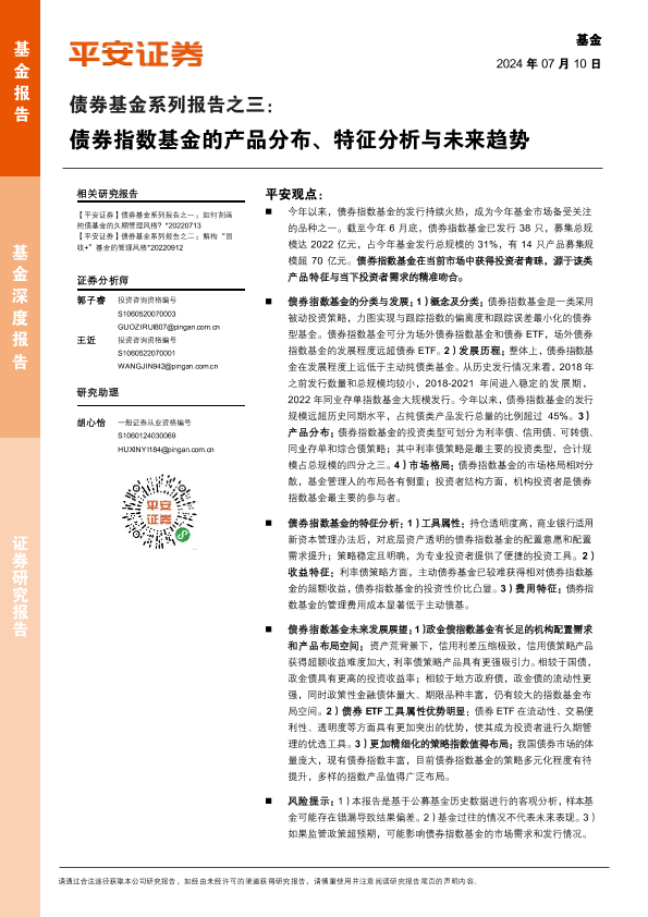 【平安证券】【20240710】债券基金系列报告之三:债券指数基金的产品分布、特征分析与未来趋势-24页