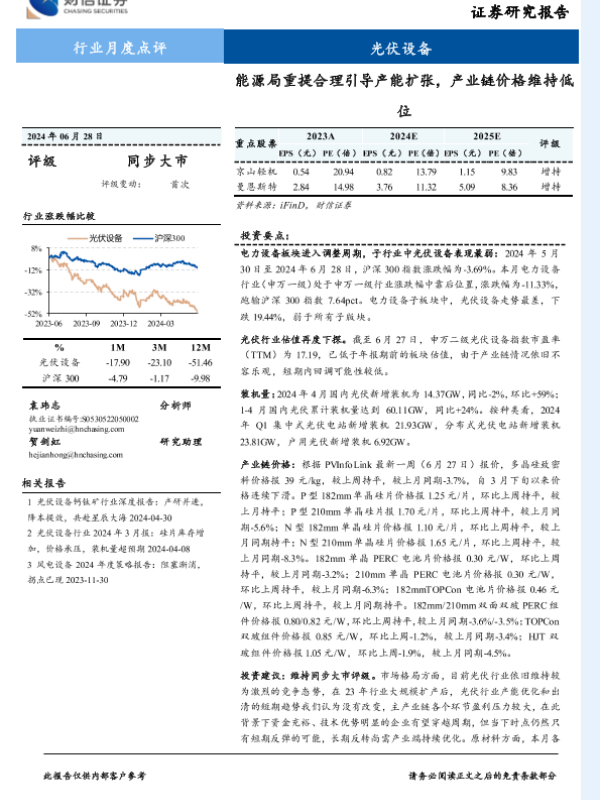 【财信证券】【20240628】光伏设备行业2024年6月报:能源局重提合理引导产能扩张,产业链价格维持低位-17页