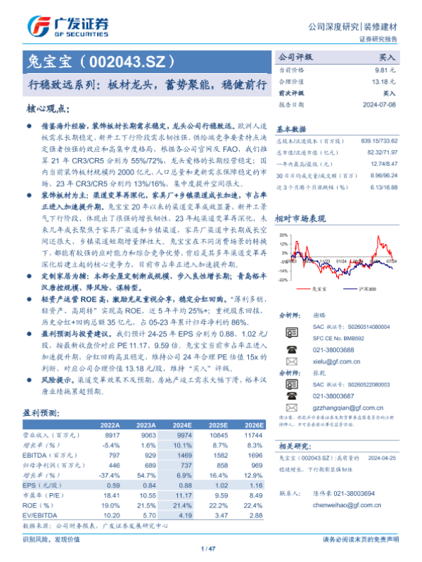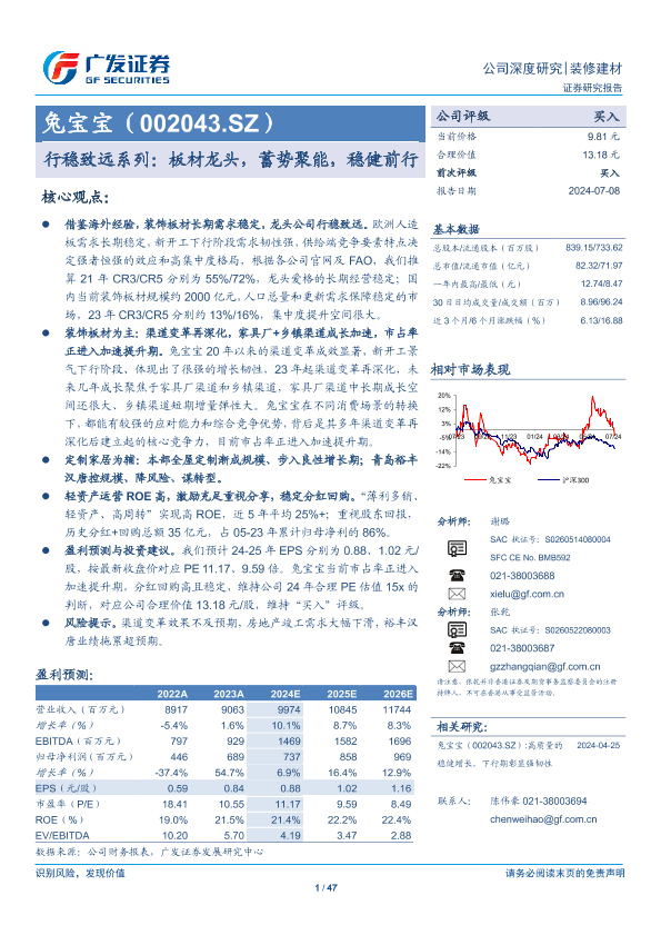 【广发证券】【20240708】兔宝宝(002043)行稳致远系列:板材龙头,蓄势聚能,稳健前行-47页