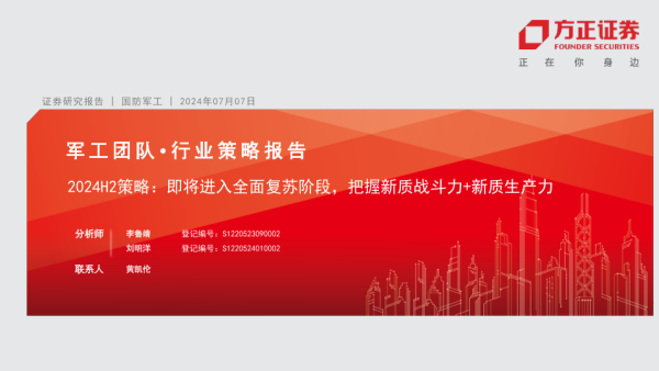 【方正证券】【20240707】军工行业2024H2策略:即将进入全面复苏阶段,把握新质战斗力+新质生产力-62页