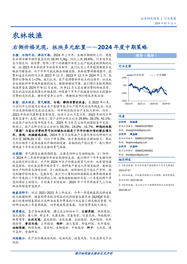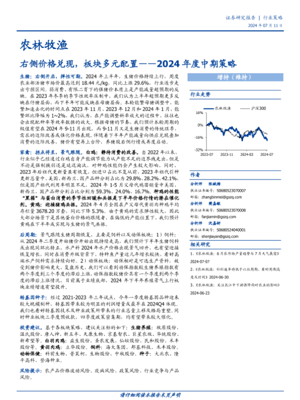 【国盛证券】【20240711】农林牧渔行业2024年度中期策略:右侧价格兑现,板块多元配置-20页