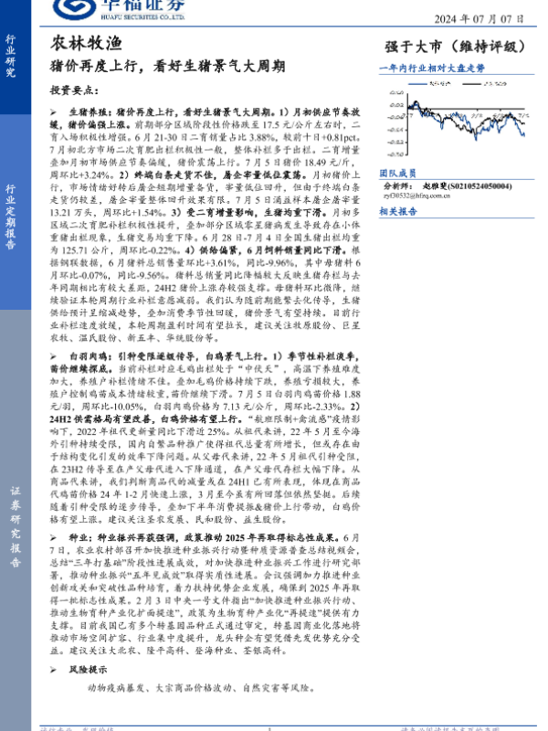 【华福证券】【20240707】农林牧渔行业定期报告:猪价再度上行,看好生猪景气大周期-12页