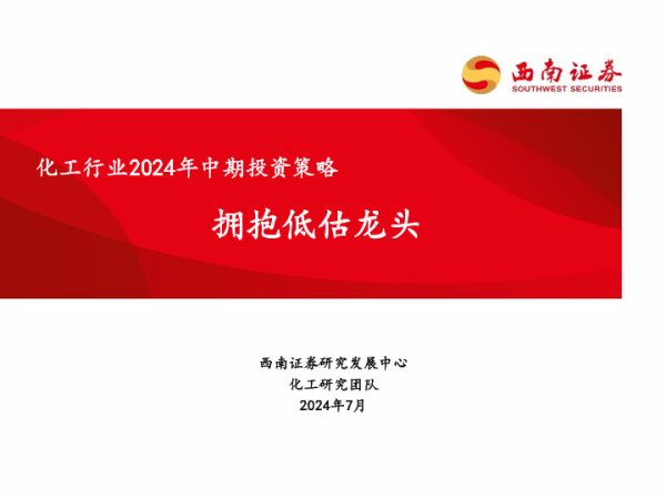 【西南证券】【20240706】化工行业2024年中期投资策略:拥抱低估龙头-57页