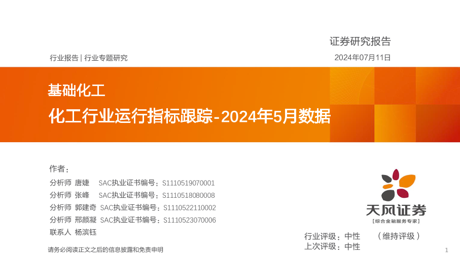 【天风证券】【20240711】化工行业运行指标跟踪:2024年5月数据-37页