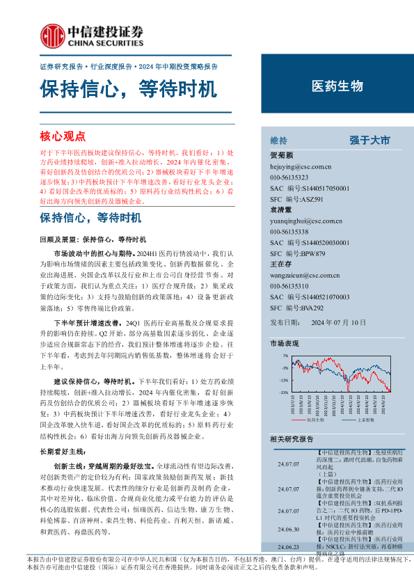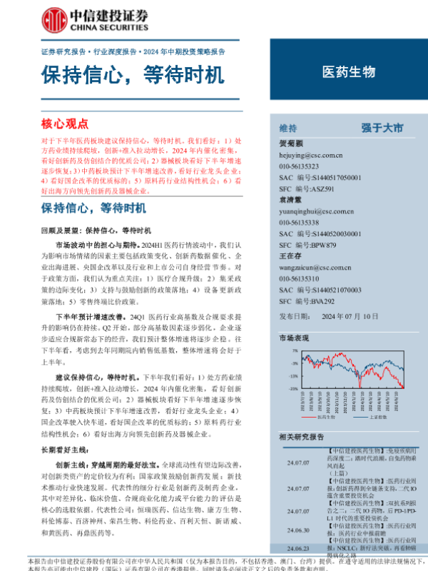 【中信建投证券】【20240710】医药生物行业2024年中期投资策略报告:保持信心,等待时机-149页