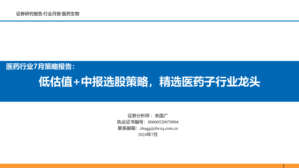 【东吴证券】【20240706】医药行业7月策略报告:低估值%2b中报选股策略,精选医药子行业龙头-35页