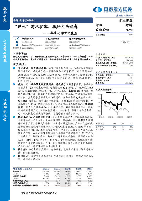 【国泰君安证券】【20240711】华峰化学(002064)首次覆盖:“弹性”需求扩容,氨纶龙头起舞-43页