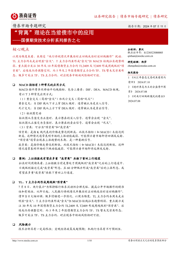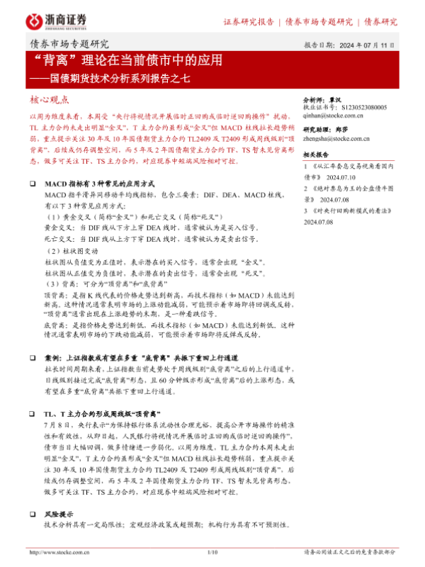 【浙商证券】【20240711】“背离”理论在当前债市中的应用——国债期货技术分析系列报告之七-10页