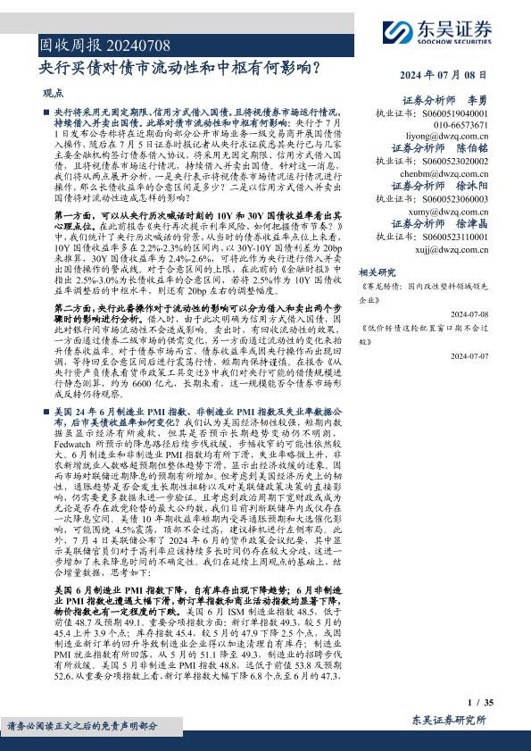【东吴证券】【20240708】固收:央行买债对债市流动性和中枢有何影响?-35页