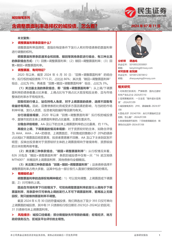 【民生证券】【20240711】城投随笔系列:含调整票面利率选择权的城投债,怎么看?-18页