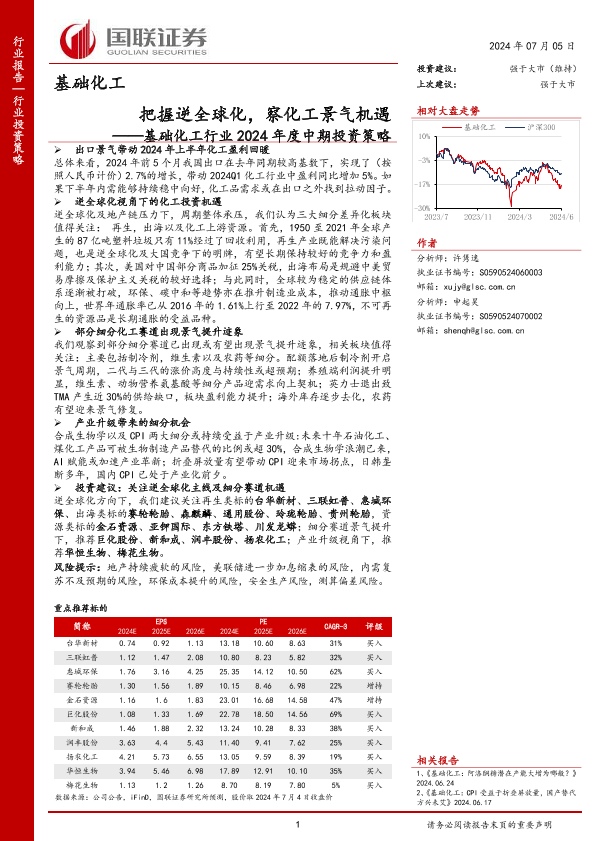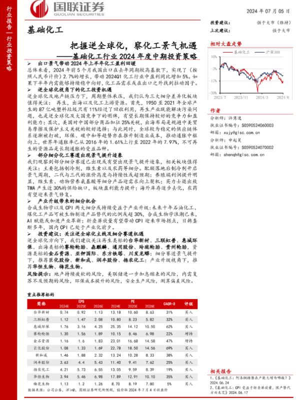 【国联证券】【20240705】基础化工行业2024年度中期投资策略:把握逆全球化,察化工景气机遇-42页