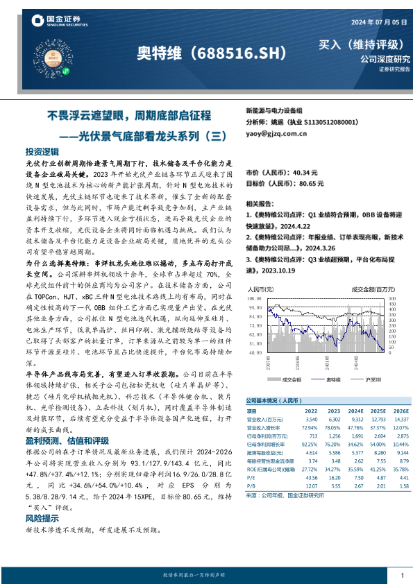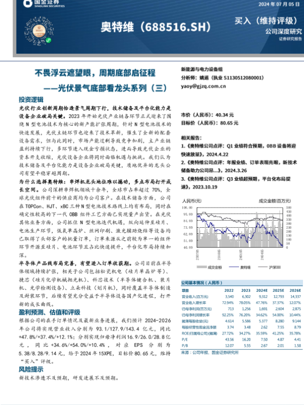 【国金证券】【20240705】奥特维(688516)光伏景气底部看龙头系列(三):不畏浮云遮望眼,周期底部启征程-30页