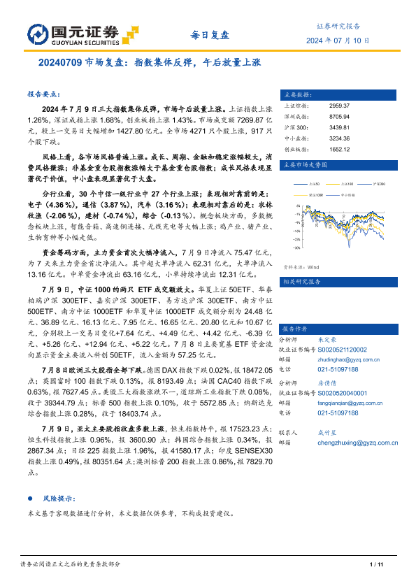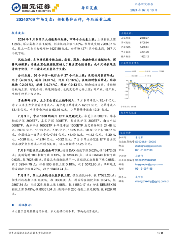 【国元证券】【20240710】市场复盘:指数集体反弹,午后放量上涨-11页