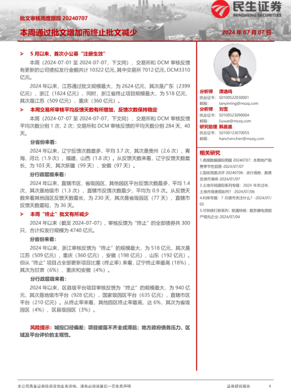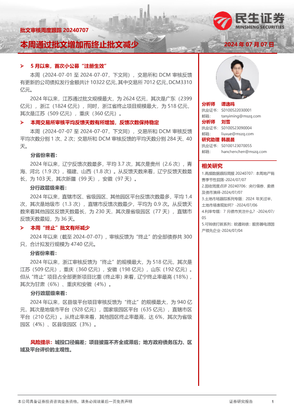 【民生证券】【20240707】批文审核跟踪:本周通过批文增加而终止批文减少-12页
