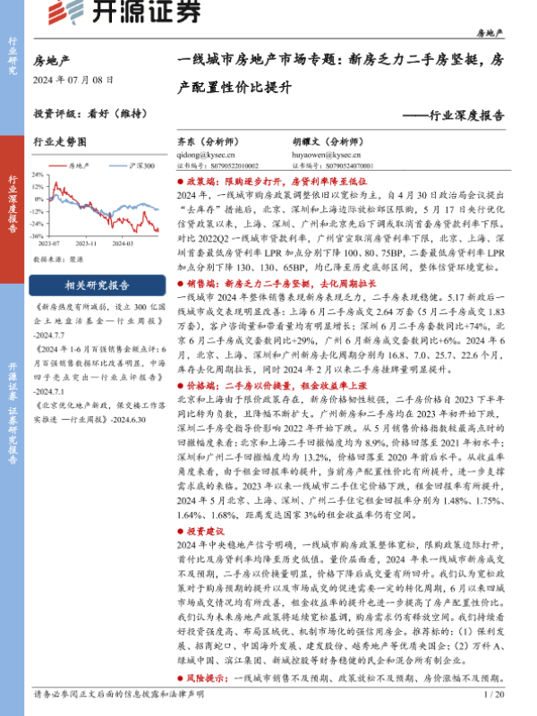 【开源证券】【20240708】一线城市房地产市场专题:新房乏力二手房坚挺,房产配置性价比提升-20页