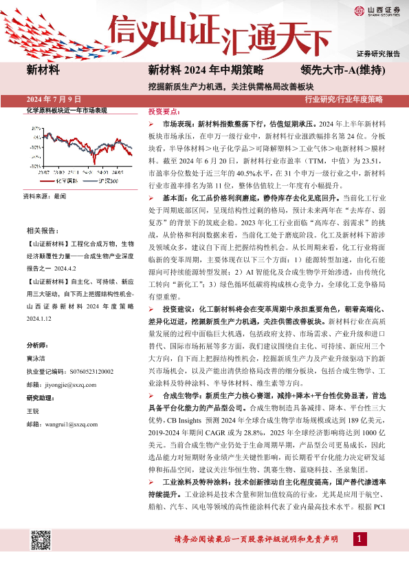 【山西证券】【20240709】新材料行业2024年中期策略:挖掘新质生产力机遇,关注供需格局改善板块-45页