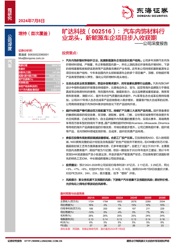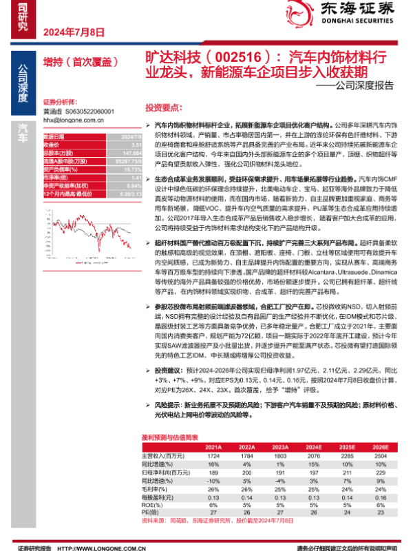 【东海证券】【20240708】旷达科技(002516):汽车内饰材料行业龙头,新能源车企项目步入收获期-31页