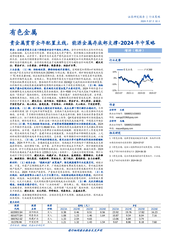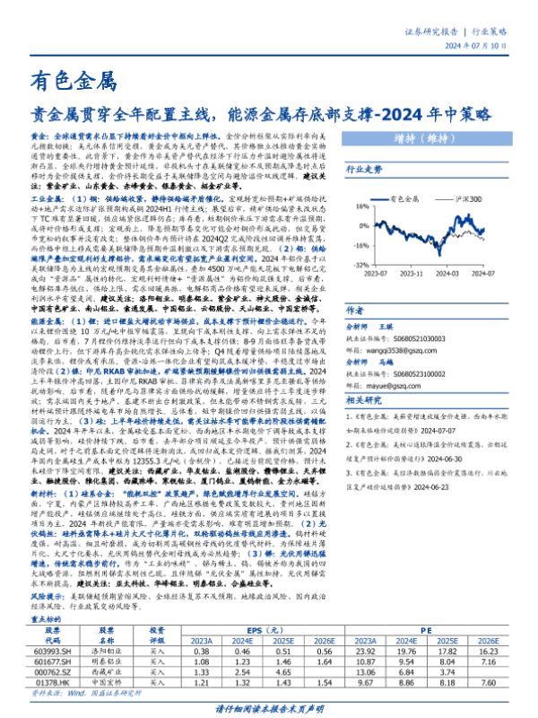 【国盛证券】【20240710】有色金属行业2024年中策略:贵金属贯穿全年配置主线,能源金属存底部支撑-59页