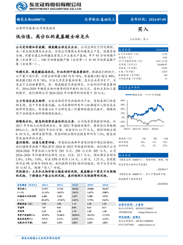 【东北证券】【20240709】低估值、高分红的氨基酸全球龙头-57页