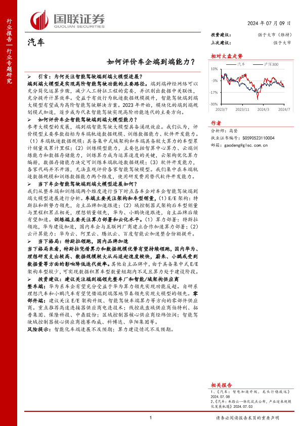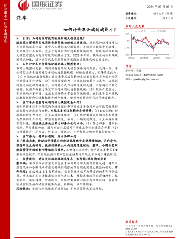 【国联证券】【20240709】汽车行业:如何评价车企端到端能力?-24页