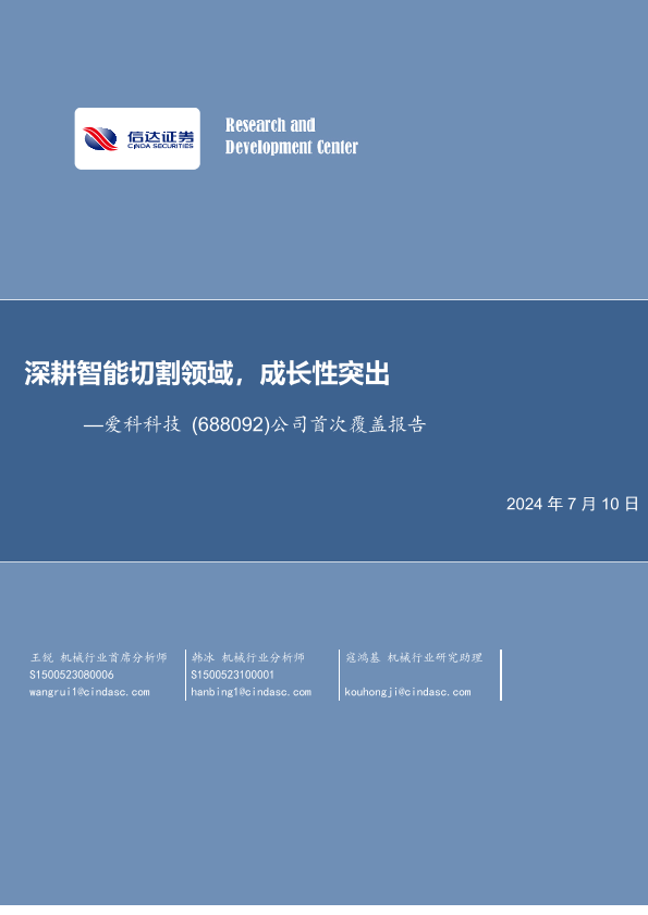 【信达证券】【20240710】爱科科技(688092)公司首次覆盖报告:深耕智能切割领域,成长性突出-32页