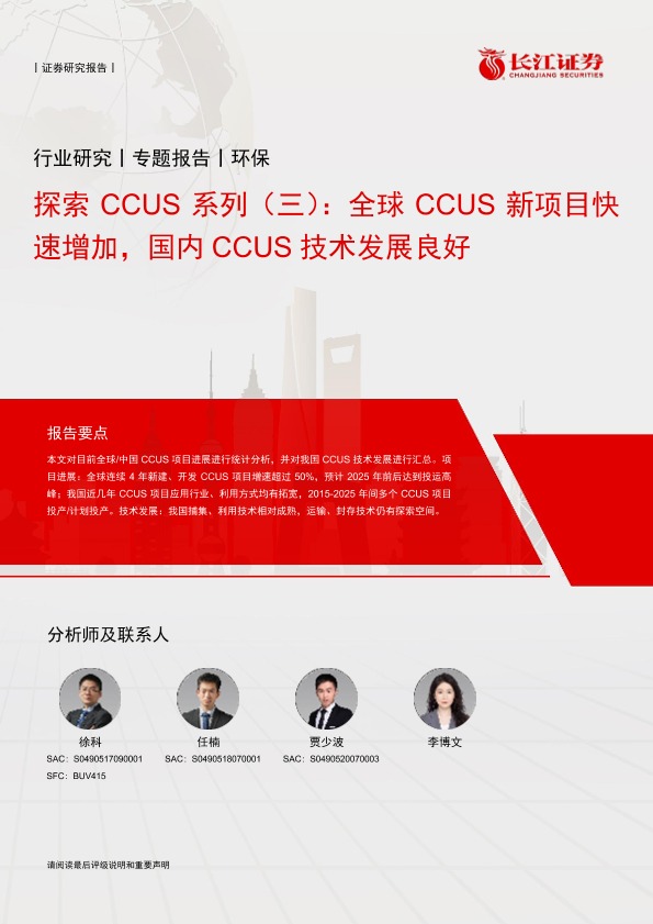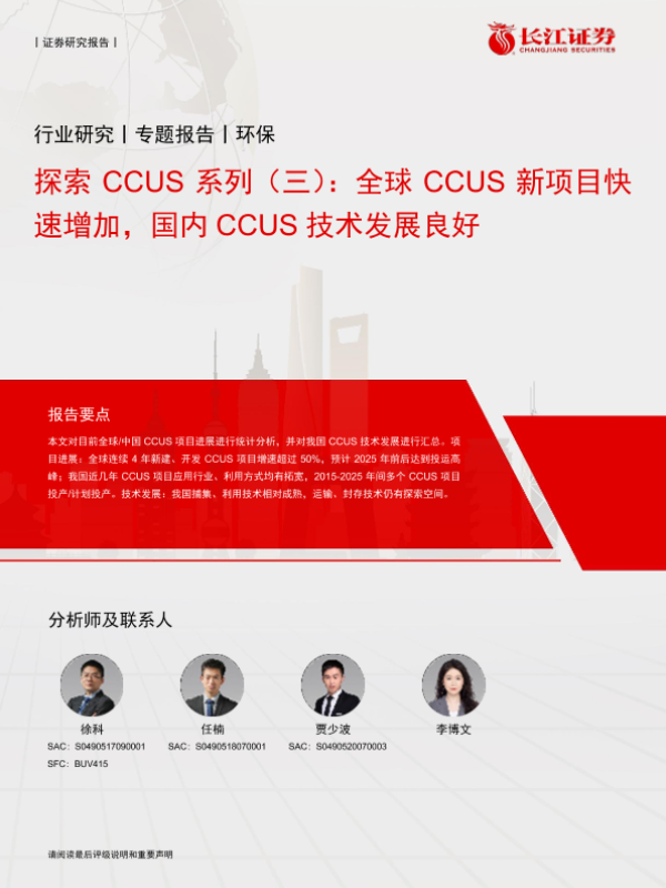 【长江证券】【20240708】环保行业探索CCUS系列(三):全球CCUS新项目快速增加,国内CCUS技术发展良好-16页