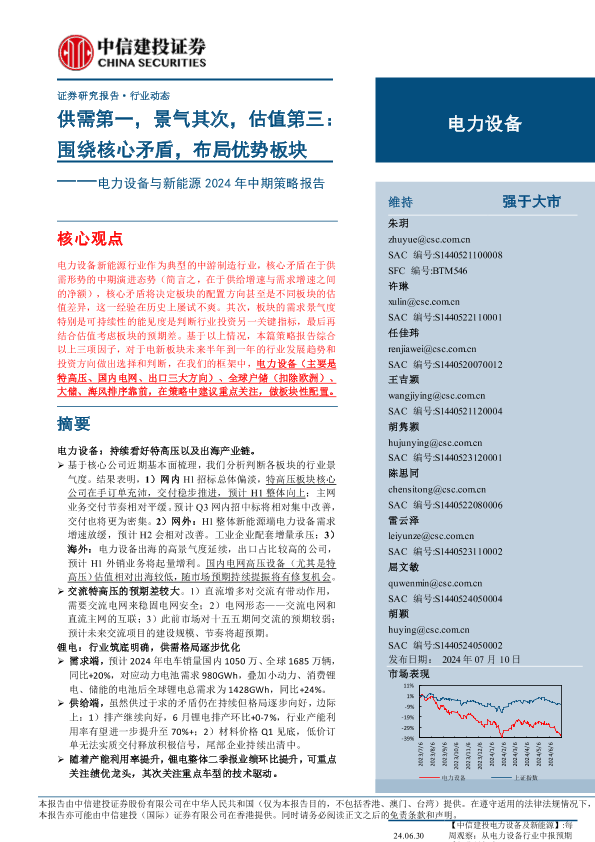 【中信建投证券】【20240710】电力设备与新能源行业2024年中期策略报告-供需第一,景气其次,估值第三:围绕核心矛盾,布局优势板块-55页
