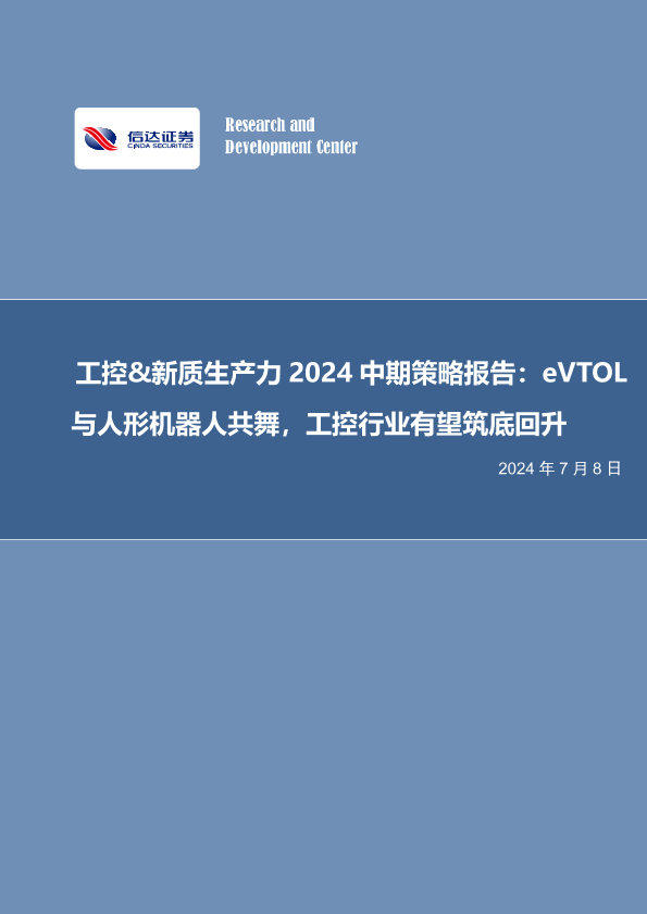 【信达证券】【20240708】电力设备与新能源行业工控&新质生产力2024中期策略报告:eVTOL与人形机器人共舞,工控行业有望筑底回升-31页