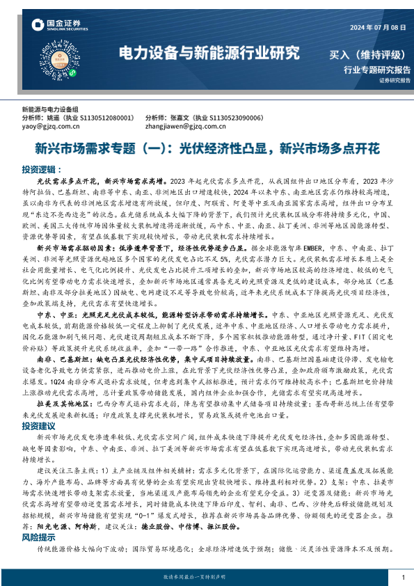 【国金证券】【20240708】电力设备与新能源行业新兴市场需求专题(一):光伏经济性凸显,新兴市场多点开花-41页