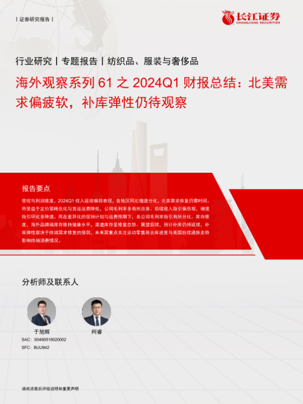 【长江证券】【20240711】海外观察系列61之2024Q1财报总结:北美需求偏疲软,补库弹性仍待观察-13页